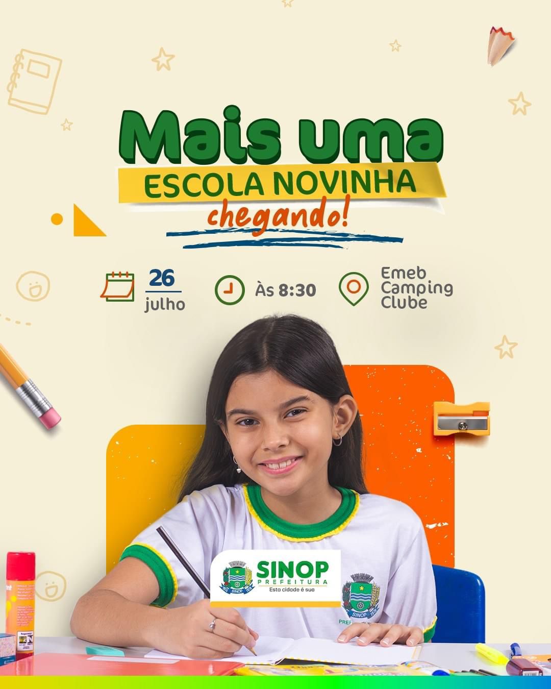 Os moradores do bairro Camping Club tem mais um motivo para comemorar, com a entrega de mais uma nova unidade escolar, totalmente equipada, que será inaugurada nesta quarta-feira (26), às 08h30. A EMEB Professora Shieley da Costa Fortuna atenderá cerca de 600 alunos e será a 4ª escola entregue em Sinop pela Prefeitura. Na semana passada foi inaugurada uma EMEI (Escola de Educação Infantil) no bairro, que já está em funcionamento, com uma ampla estrutura, atendendo cerca de 300 alunos. Esse é um sonho antigo da população, que está há anos aguardava por essas unidades.