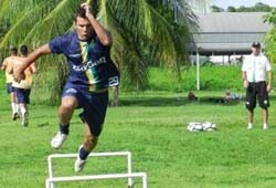 O preparador físico Claudinei Affonso Dudi aplicou um circuito de resistência física a partir das 16h. Os jogadores tiveram um treino pesado embaixo do forte sol cuiabano.