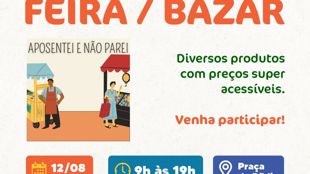 1ª Feira e Bazar dos servidores municipais aposentados será neste sábado (12) na Praça da Bíblia