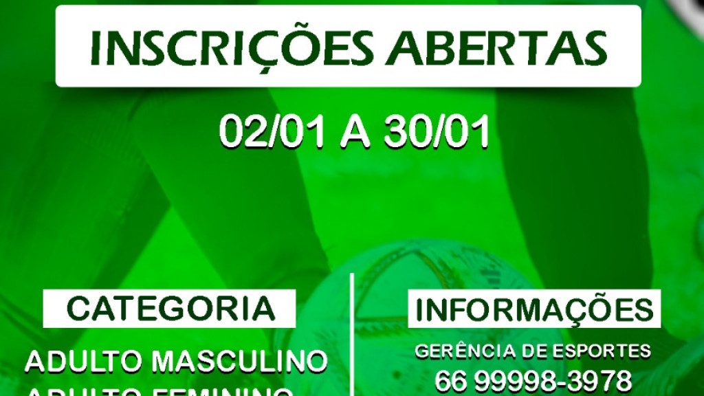 Uma das competições mais esperadas para os amantes do futebol amador, a Copa Marcelinho Boiadeiro de futebol de campo, está com as inscrições abertas, nas categorias feminino e masculino. Os interessados em participar podem solicitar a ficha de inscrição pelo whatsapp (66) 99998-3978. As inscrições seguem até o dia 30/01 e o congresso técnico será realizado no dia 31/01. A abertura oficial da copa, que está na sua 11º edição, está prevista para 03/02, no estádio Gigante do Norte.