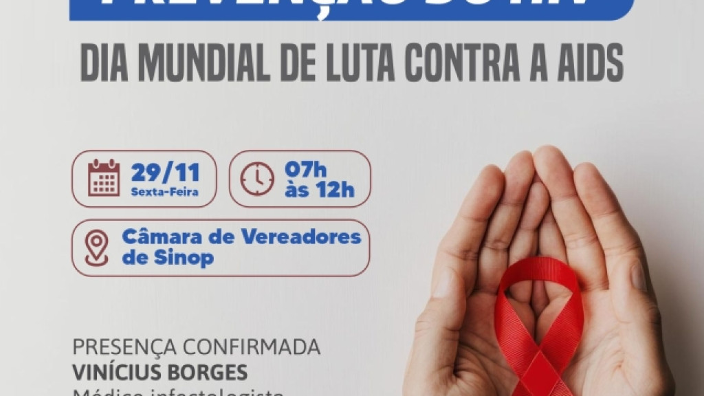 Dia Mundial de Luta Contra a AIDS (1° de dezembro), será realizado no final deste mês, dia 29, na Câmara Municipal