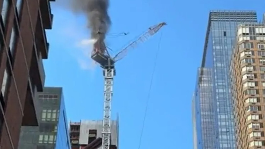 Guindaste despenca após pegar fogo e atinge 6 pessoas em Nova York